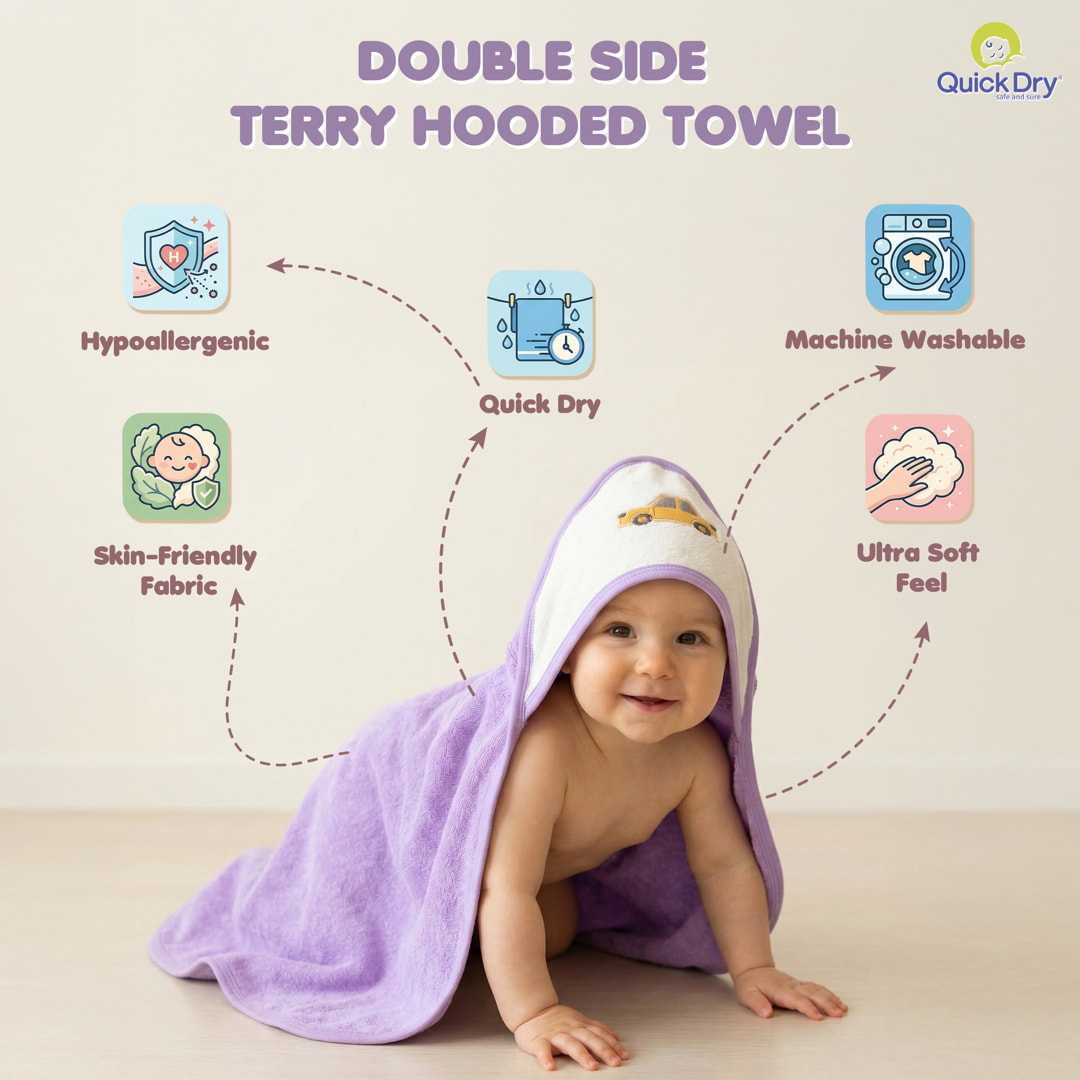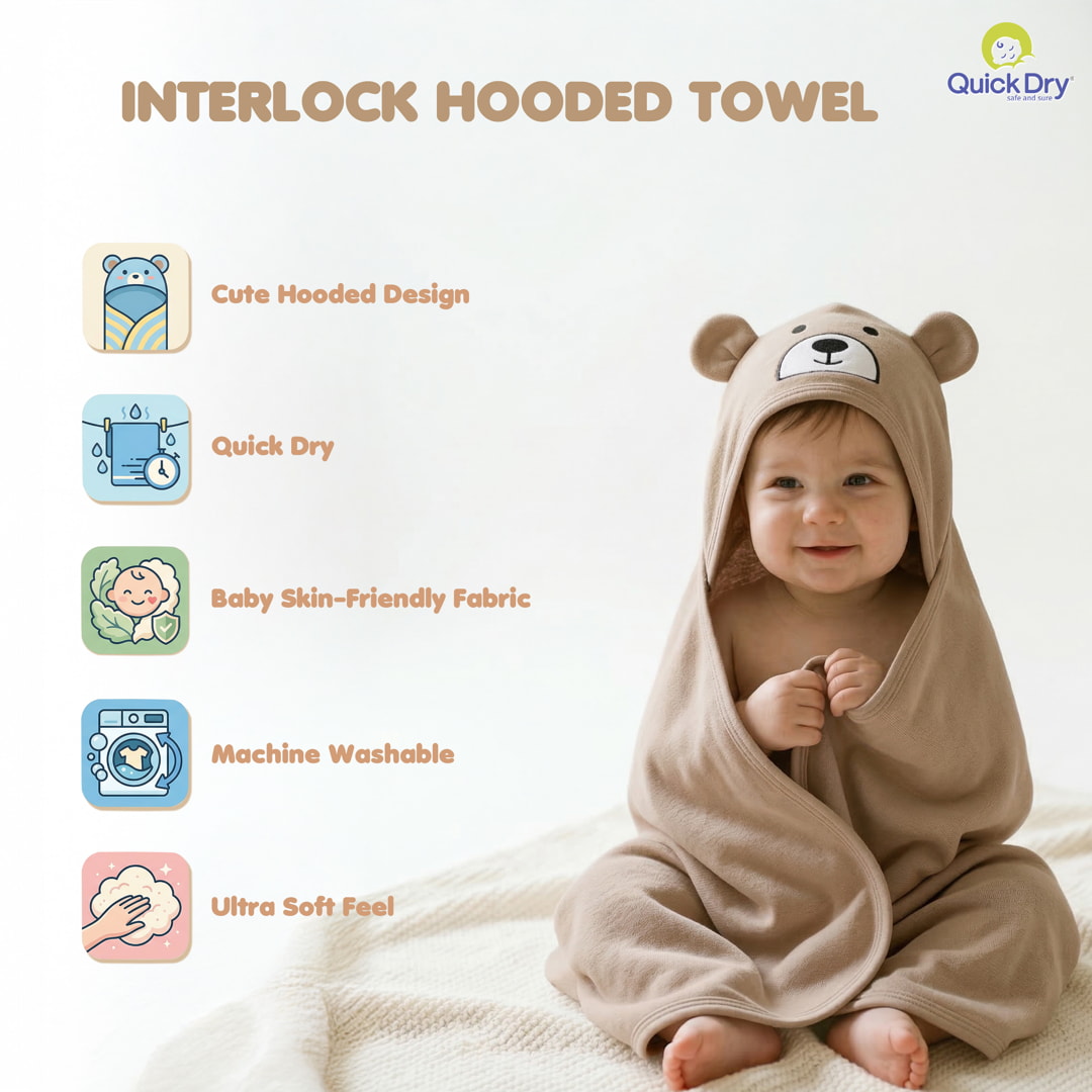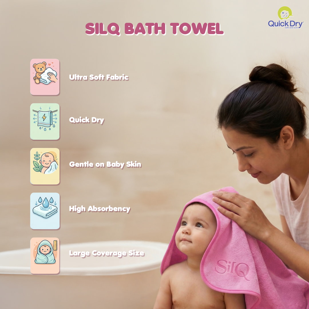 Give your little one the perfect bath-time comfort with this thoughtfully curated baby towel combo. It includes the quick-dry SilQ Towel for everyday use, a plush double-sided terry hood towel for superior absorbency, and a premium interlock hood towel that gently wraps your baby in warmth. Crafted from baby skin-friendly, ultra-soft fabrics, each towel is highly absorbent, durable, and gentle on delicate skin. Easy to wash and quick to dry, this combo is ideal for bath time, travel, and daily care—making it a complete towel solution for modern parents.
